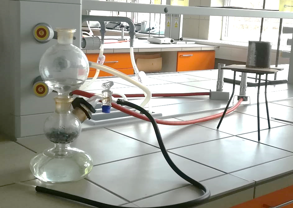 - Při otevřeném kohoutu probíhá reakce Zn s HCl a vzniká plynný vodík.