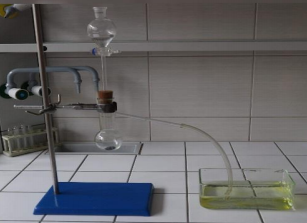- Vodu s jarem promíchejte hadicí vedoucí z Kippova přístroje, ve kterém vzniká vodík.