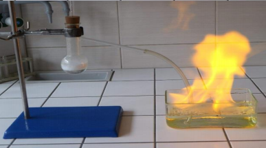 - Vedle trojnožky s plechovkou si připravte Kippův přístroj se vznikajícím vodíkem (v dostatečné vzdálenosti).
