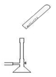 - Zapalte kahan, vezměte zkumavku, odzátkujte a přiložte k plamenu podle obrázku vlevo.